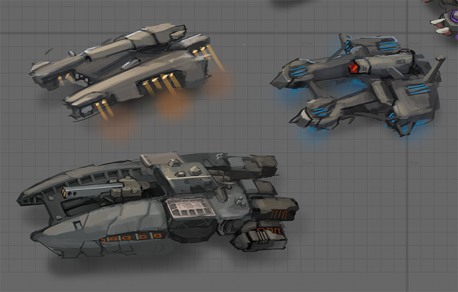 I wasn’t available to choose which unit concepts would ultimately become units and thus, those decisions were made in abstention. When the game was first designed, the mantra was “The units ARE the icons”. That is, that the shapes of the units would be so distinct that they would act as icons thus allowing players to zoom out and recognize the units very far away. While the units we ultimately went with are visually very cool, they are not as distinctive as we would like.